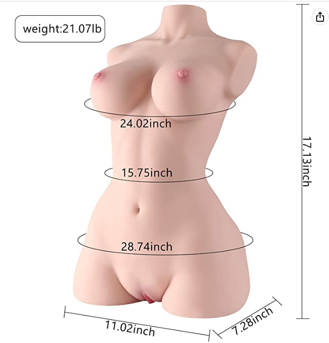 性感娃娃尺寸:11.02''x7.28" x17.13'';重量:21.6lb 阴道长度:6.29 英寸;肛门长度:5.7 英寸