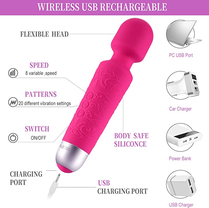 100% 防水防水USB 可充电无线手持式紧凑型超强大的高强度电机,但安静且噪音最小超柔软和超光滑的优质医用硅胶,带来完全的舒适感电池寿命长,可升级 30 次多速振动,带记忆功能