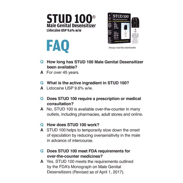 产品详情Stud 100 男性生殖器脱敏喷雾,7/16- Fl。盎司盒(1 包)